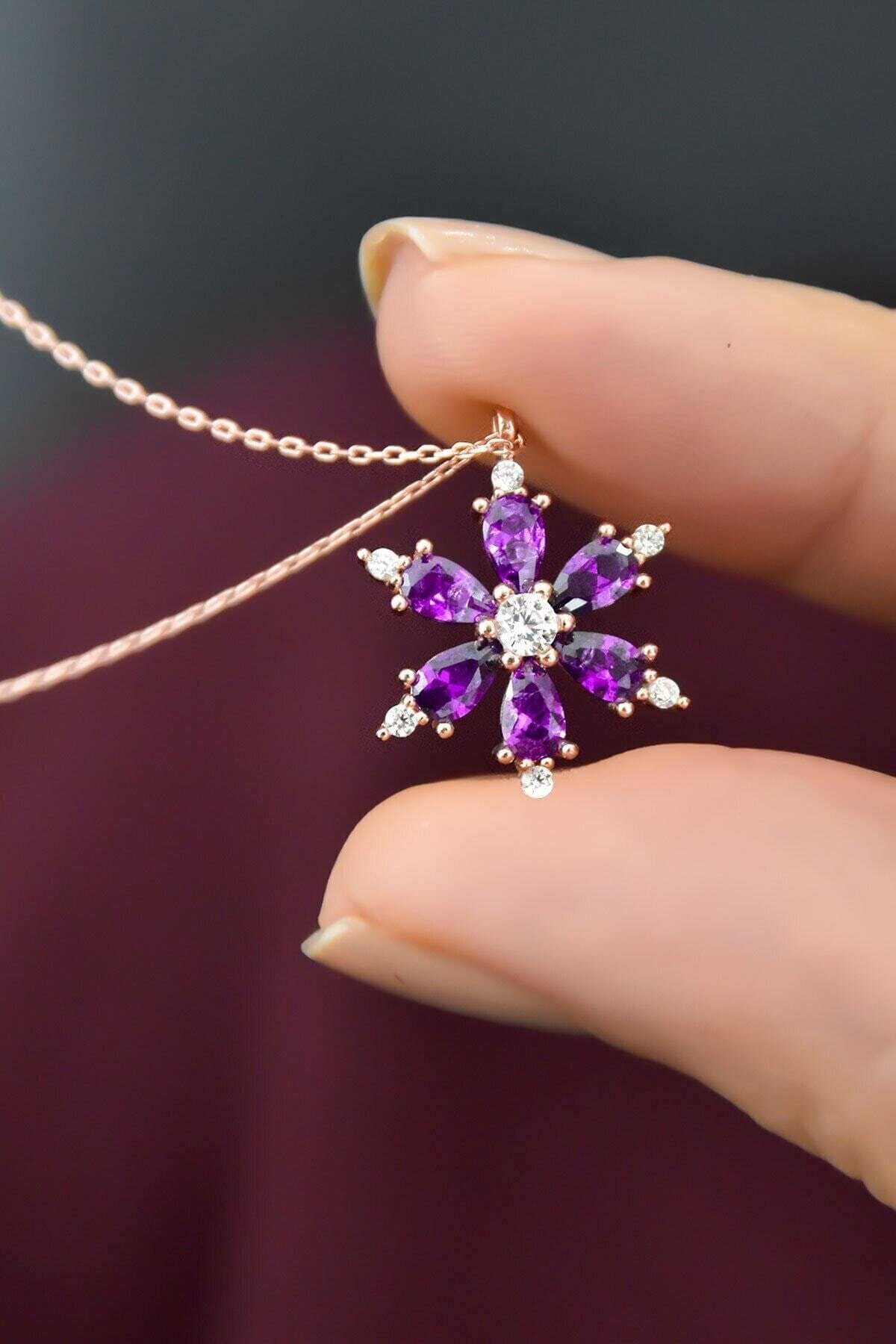 Ayar Gümüş Zincirli Ametist Taşli Rose